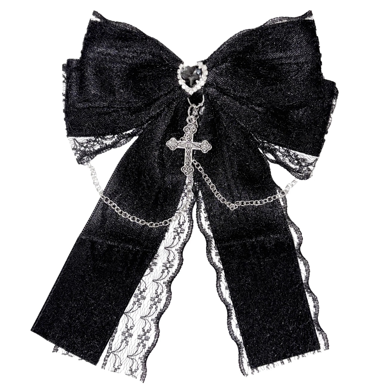 Dieses süße Gothichütchen ist mit einer Satinschleife, Federn und gepunktetem Minischleier verziert. Die Spange wird mit einem Clip befestigt. Der Durchmesser beträgt ca. 10cm.
